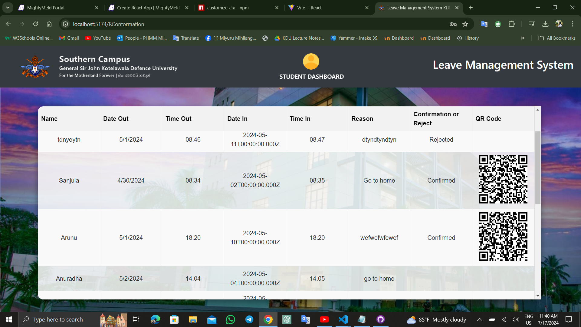 The KDU Leave Management System is an innovative and efficient solution designed to streamline the leave application and approval process for students at the KDU University. The system enhances the traditional leave management workflow by integrating advanced features like QR code generation and gate integration.